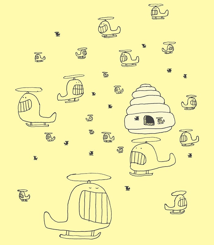 Hear the sweet sound of little buzzing propellers all around you with the beautiful fields below. The Helibees out on their daily trips to capture fuel for the Queen. Day in and day out working away together to build the colony and help the Hive thrive. What it would be like to be able to fly around all day without a care in the world. Awww to be a Helibee, now that is the life.