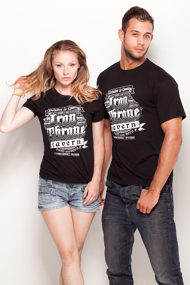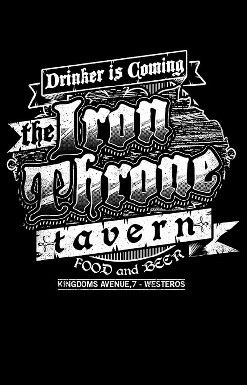 The Iron Throne Tavern has just opened in Kingdoms Avenue, Westeros. A Game of thrones parody tshirt for fans of the series. In black for both guys and girls. Drinker is coming.